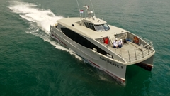 This vessel features modern styling and represents an exciting new generation of catamaran. Efficient operation and excellent seakeeping are hallmarks of this hull form.